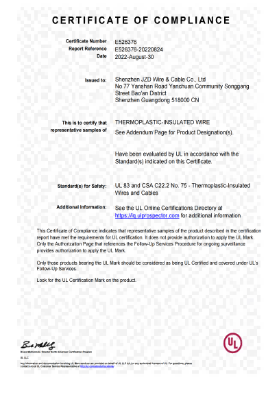 深圳建圳達電線電纜有限公司,成立于2000年,是一家電線電纜制造商,我們通過了世界各地不同市場的多數認證,如:CCC、RoHS、CB、SAA、TUV、VDE、PSE、BPS、UL、CSA。我們根據定制產品不斷更新新的認證。經過數十年的發(fā)展,我們與來自世界各地的客戶建立了長期的合作關系。我們曾經是菲律賓機場,,柬埔寨的電力站,美國的醫院,工廠,埃塞俄比亞的水電站項目。我們是一家值得信賴的電線供應商。
